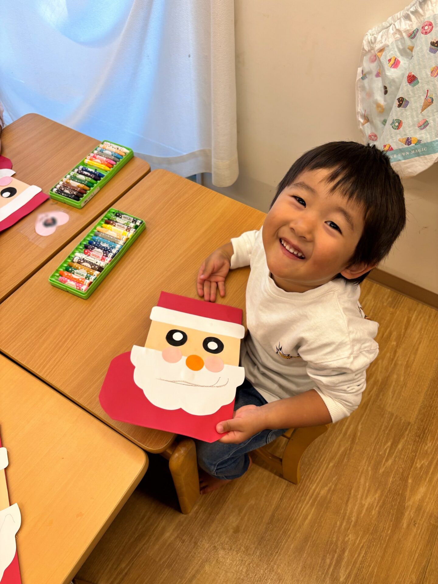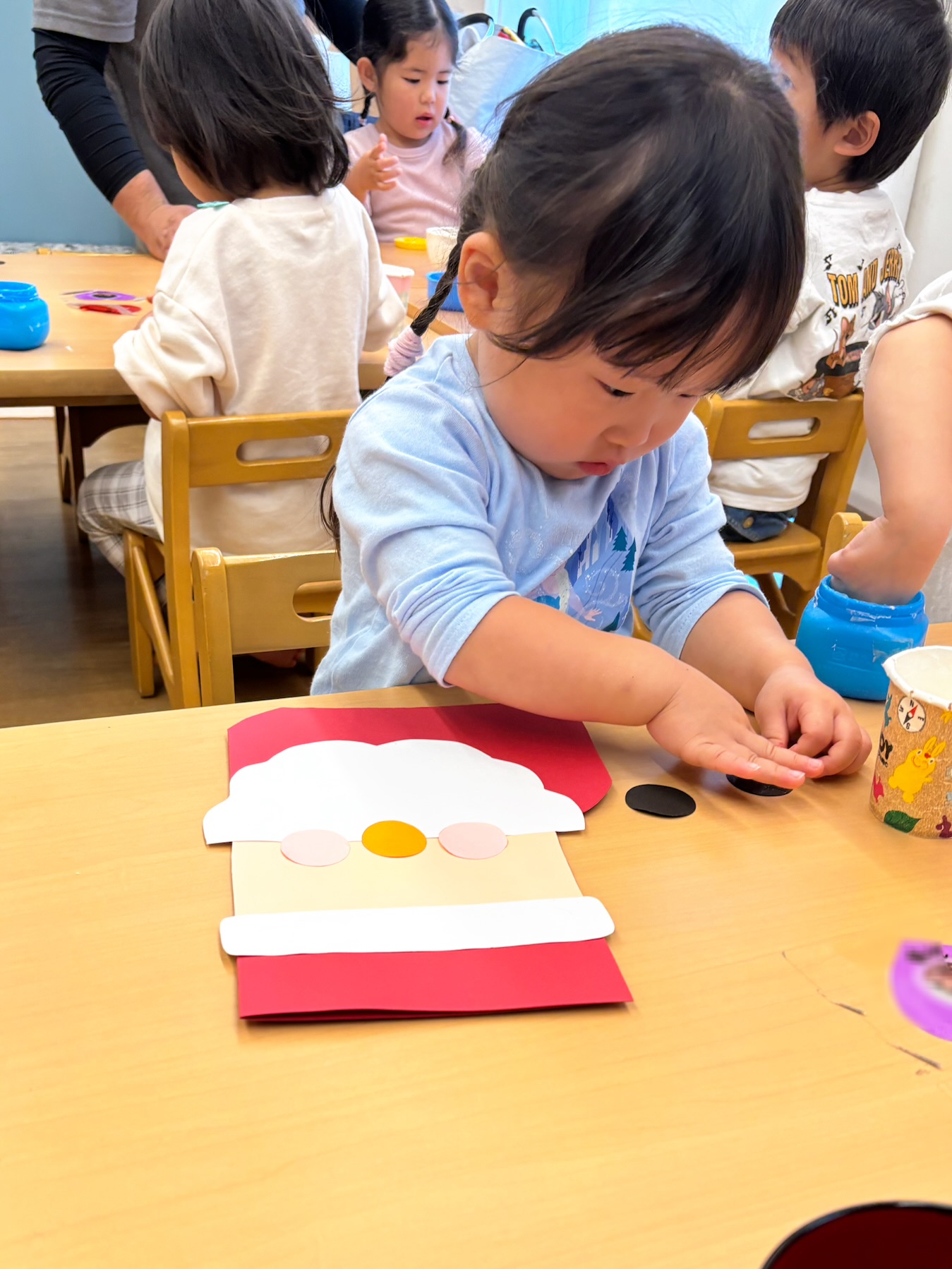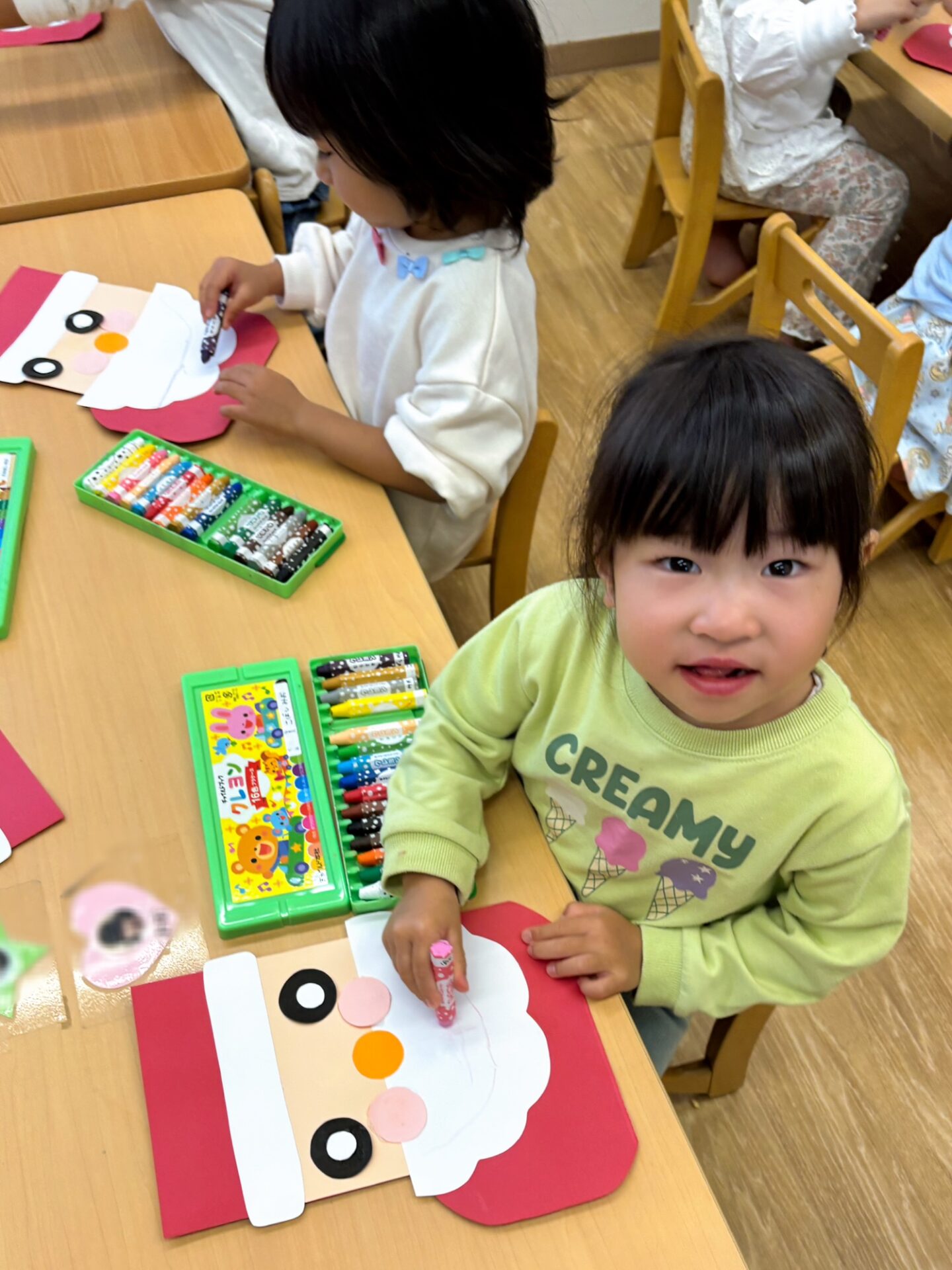 今日は、どれみ組の子どもたちがクリスマスに向けてサンタクロースの製作を行いました。