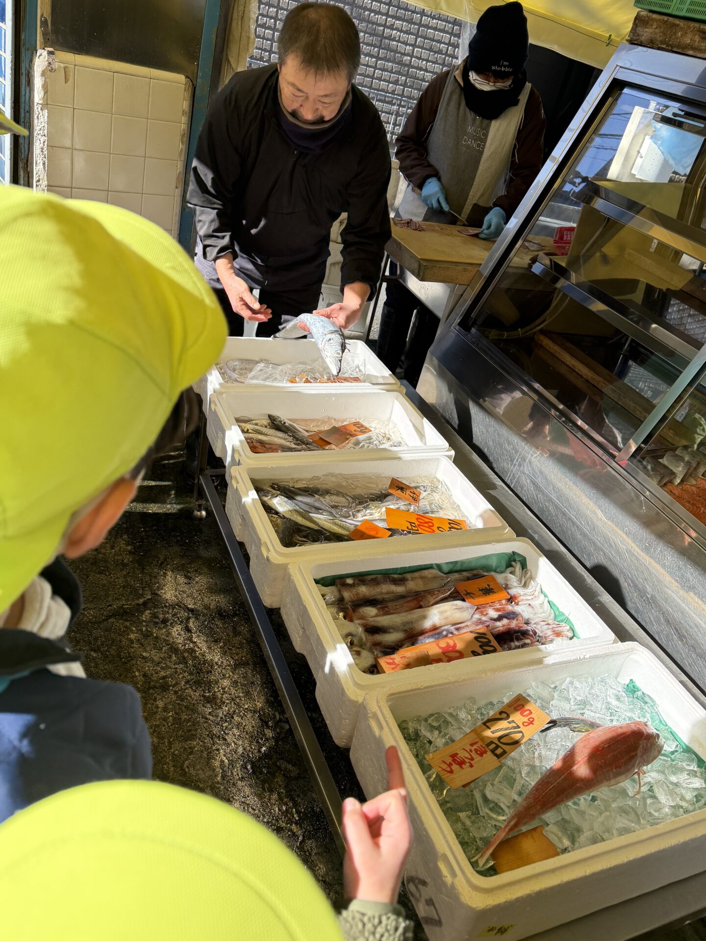 魚屋さんに到着すると、ご主人が温かく迎えてくださり、子どもたちのたくさんの質問にも一つひとつ丁寧に答えてくださいました。