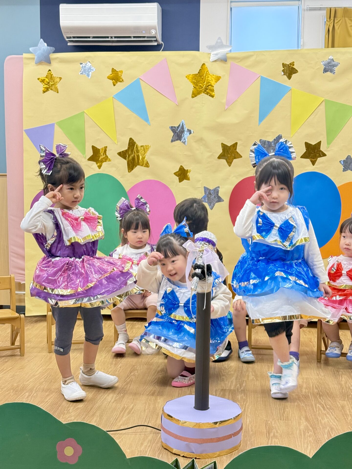 たくさんの人に見守られる中で緊張する姿も見られましたが、お友達や先生と一緒に頑張ることで、最後までやりきることができました。舞台の上で見せてくれた子どもたちの表情からは、大きな自信と達成感が感じられました。