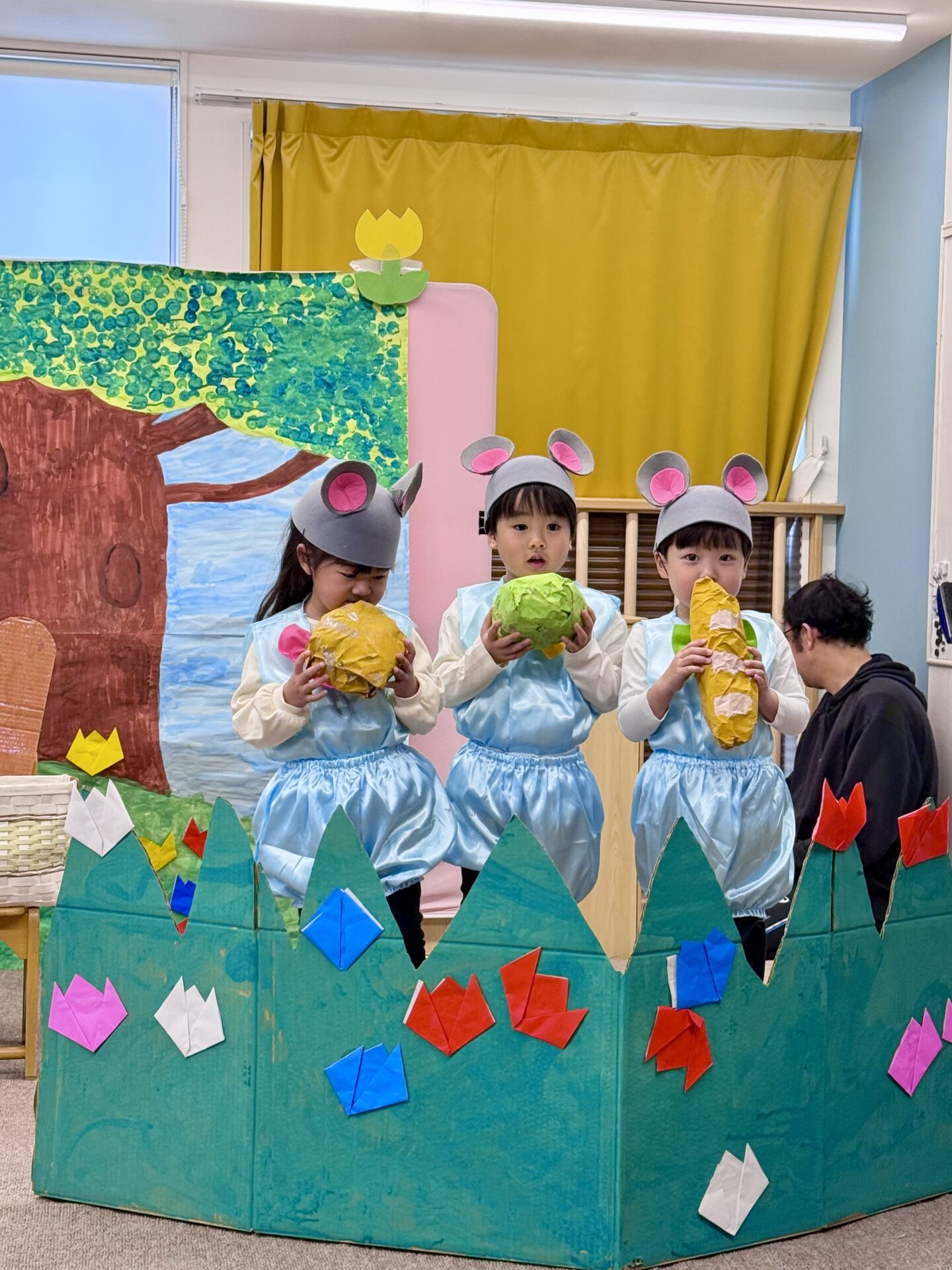 乳児クラスのお友達は可愛らしい姿で表現遊びを楽しみ、幼児クラスのお友達は歌や劇など、それぞれの年齢に応じた発表に挑戦しました。
